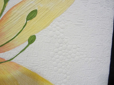 And just look at her free motion quilting. She does this beautiful quilting on a home sewing machine. I was lucky to take a class from her and get some tips about machine quilting.